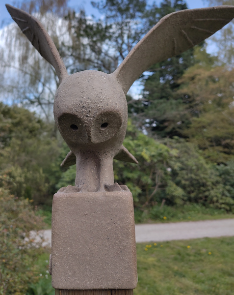 Dit jaar doe ik mee met de tentoonstelling Ode aan de Natuur in het Nationaal Bomenmuseum Gimborn met de installatie "Velduilen", een groep van 8 uilen. Velduilen vallen op omdat ze soms ook overdag jagen en in groepen opereren. Het is een middelgrote uil met opvallende gele ogen, "oortjes" als ze alert zijn en lange smalle vleugels. Ze leven in half-open landschappen. Ze jagen vooral op muizen. Ze broeden op de grond, vaak in kolonies.