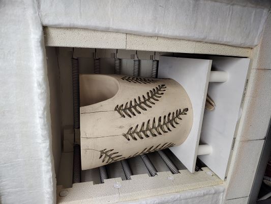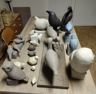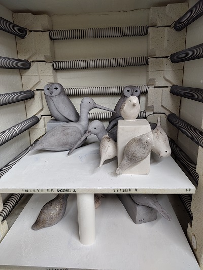 Eigenlijk nog in de oven: een verse lading beelden die ik in de zomer van 2024 heb gemaakt. Hieronder vlak voor de glazuur brand...