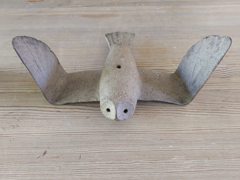 vleugels van vochtige, leer-harde, nog buigzame klei die omhoog moeten blijven staan...
