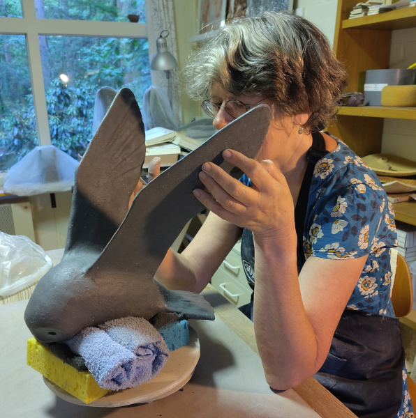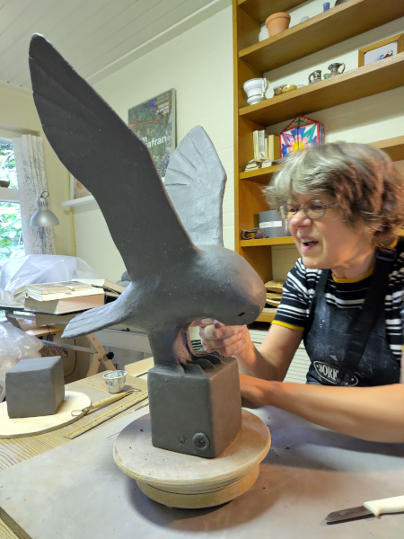 Ik heb vaker keramieken vogels gemaakt, maar de landende velduil met gespreide vleugels is een verhaal apart. Ik zoek hiermee de grenzen op wat je met klei kunt doen, omdat je de zwaartekracht tart.