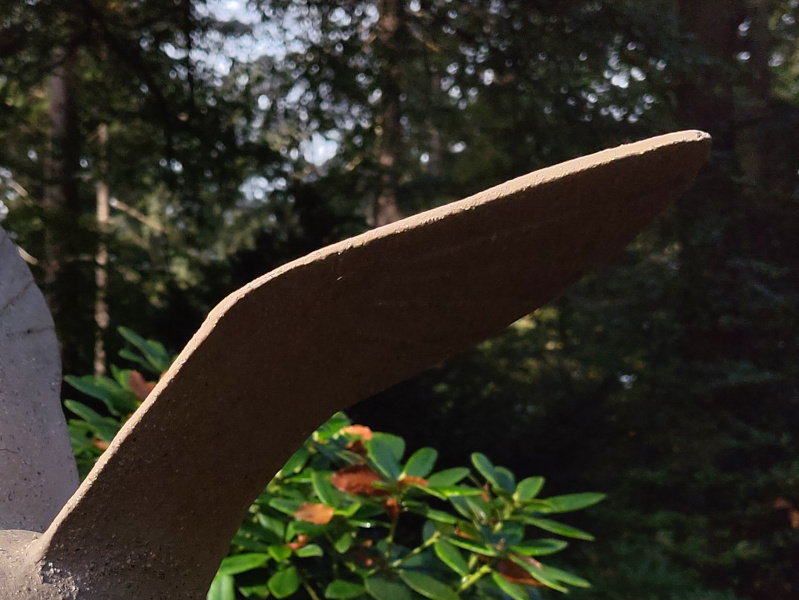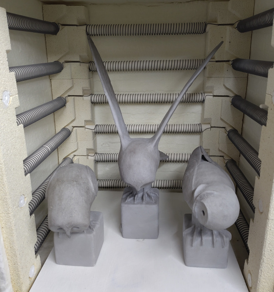 vleugels van vochtige, leer-harde, nog buigzame klei die omhoog moeten blijven staan...